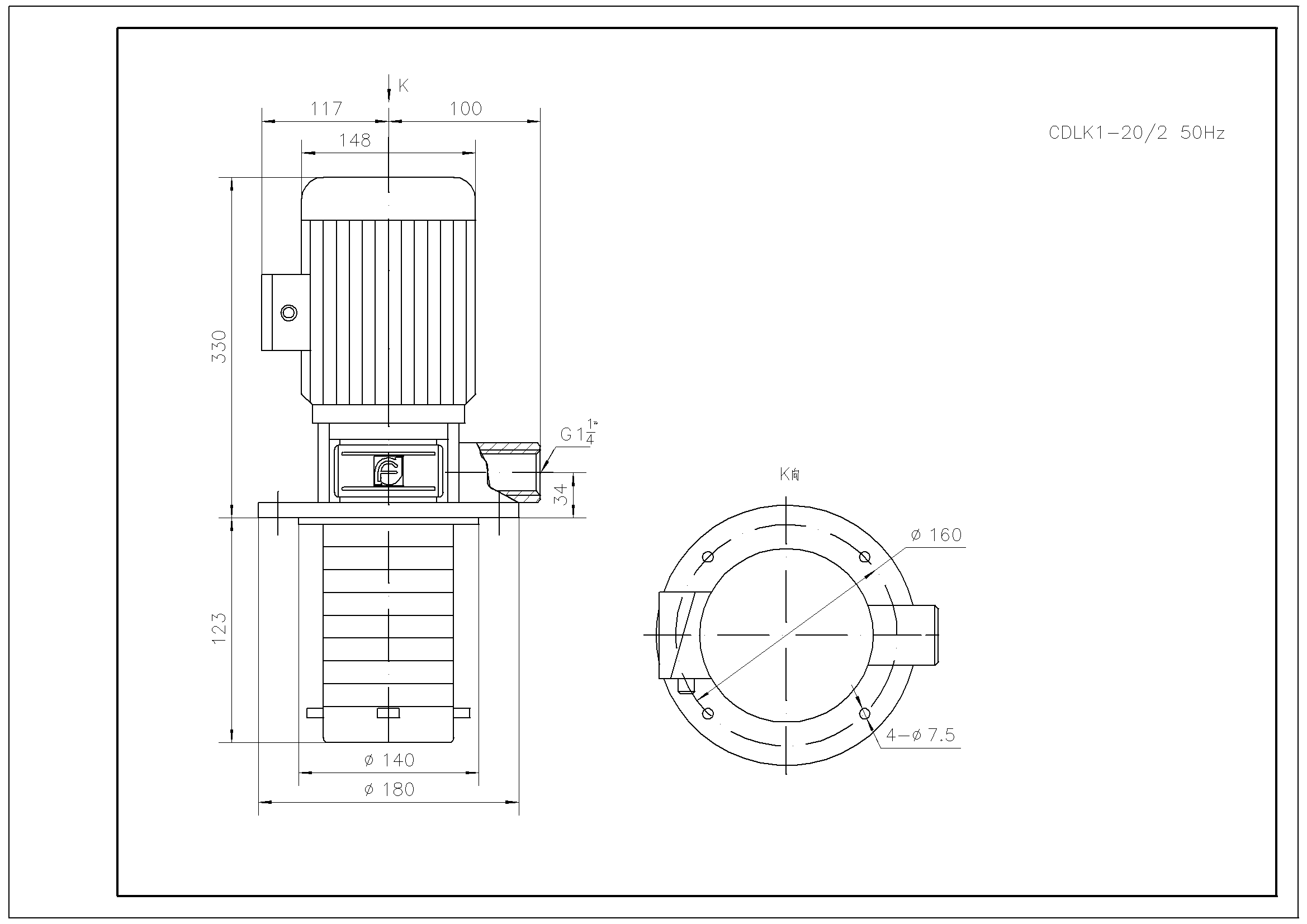 需要南方泵CDLK1-20/2外形CAD文件 請加銷售人員微信索取