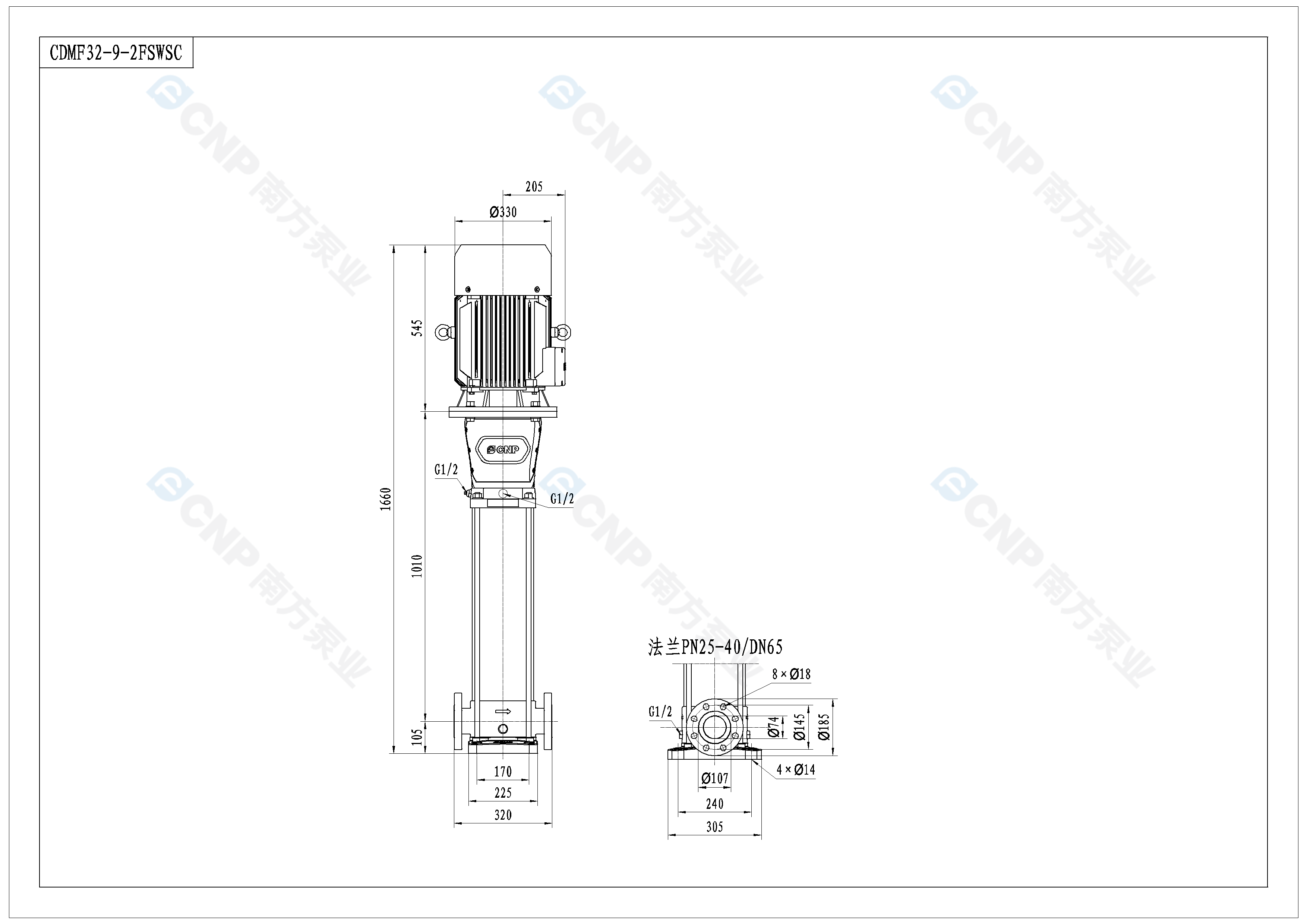 需要南方泵CDM32-9-2外形CAD文件 請加銷售人員微信索取