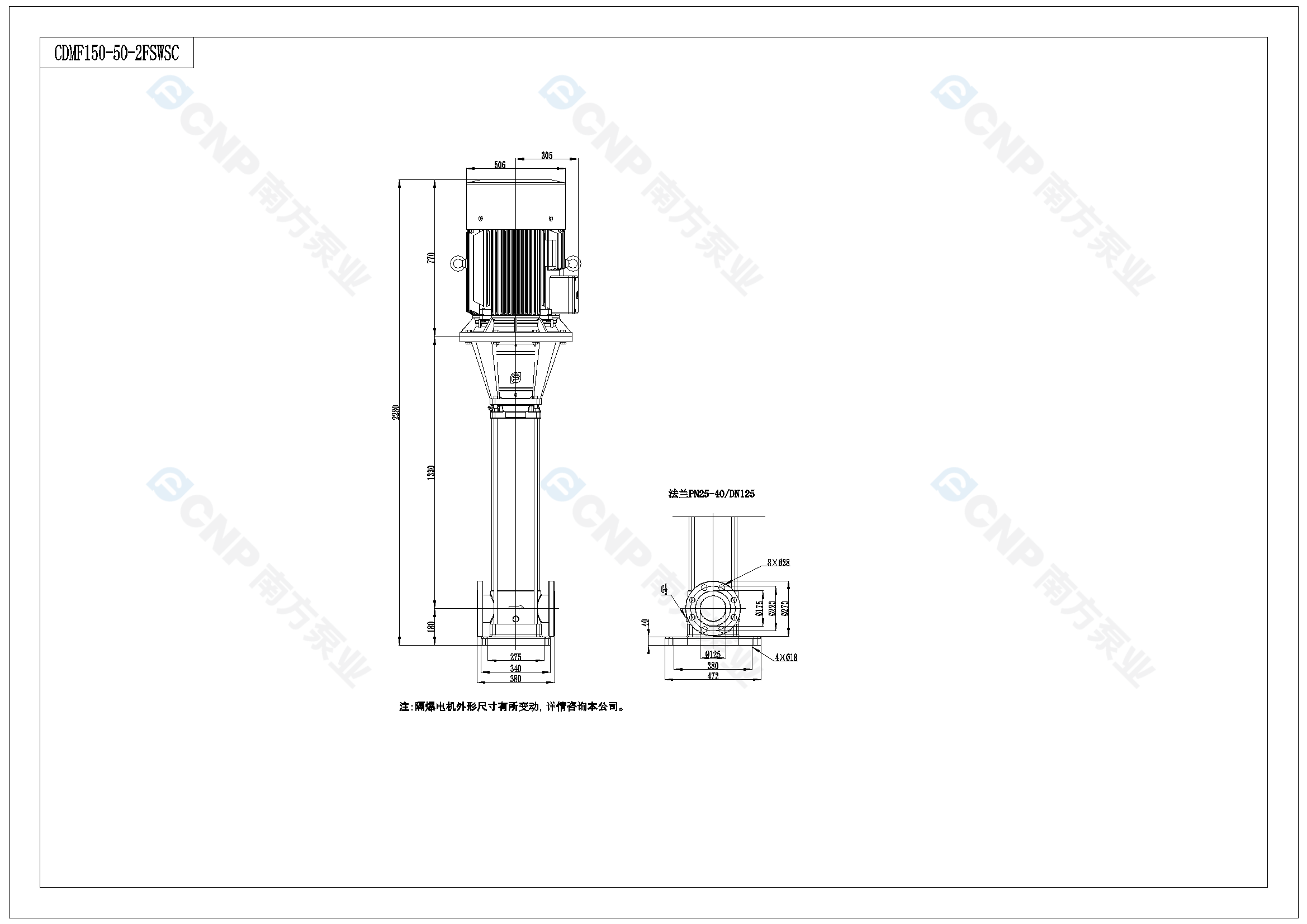 需要南方泵CDM150-5-2外形CAD文件 請加銷售人員微信索取
